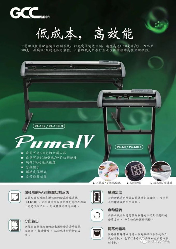 1.由数位控制的伺服系统提供动力 2.搭配精准定位的(AAS II)运动光学定位原理侦测输出图片上的标记点 3.一机多用刀座笔座均可使用 4.优化吸风设计,减少翘边 5.中文LCD按键面板