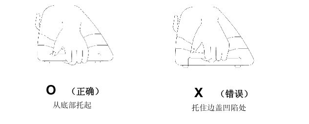 安全警告在移动本机器时,出于安全考虑,请从底部牢牢地托住它,不要抠住两边凹陷处。