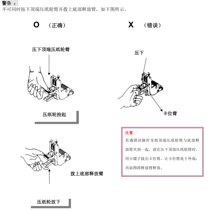 使用前不要拆下塑料刀座套或震动刀座,以防止笔刀脱落。 防止儿童接触本机器。 务必确保压纸轮位于走纸滚筒之上(可对照导轨上的“白色标记” )。